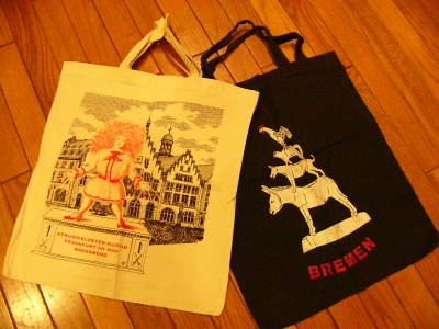 ・買い物袋持参が当たり前のヨーロッパでは、レジ横で布袋も売っている。パン屋さんやお肉屋さんの布袋はかわいくて、喜ばれた。しかも安い。(200円くらい)
