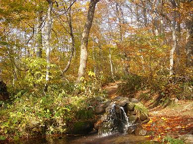 ブナの森の中、通称ブナの泉と呼ばれる月山の湧き水。