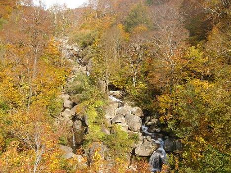 石跳川の紅葉、少し上流の湯殿山が源流。