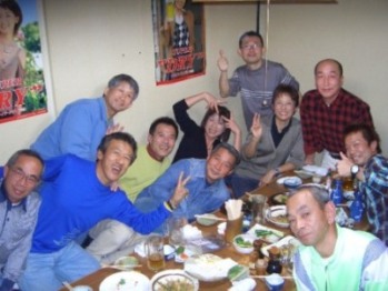 夜は恒例の打ち上げを馴染みの居酒屋で盛大に行いました。昼間の疲れはなんのその、レースよりこちらの方がいつも