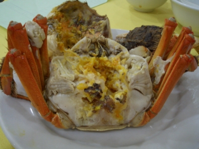 テーブルクロスが掛かっていて店先に水槽を置いてあるような海鮮料理系の店のほとんどに大閘蟹(上海蟹)の張り紙があって、値段も思ったほど高くなかった。ぜんぜん店を知らなかったので、いつもの一人旅同様、