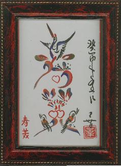 それから私は予定通り周りを観光し、仕上がり時間より大幅に遅れて戻ってきたところ、彼はちゃんと私の帰りを待っていて?にこにこと「これです。きれいでしょう?」と言って、この作品と呼ぶにふさわしい絵文字の描かれた用紙を私に手渡したのでした。