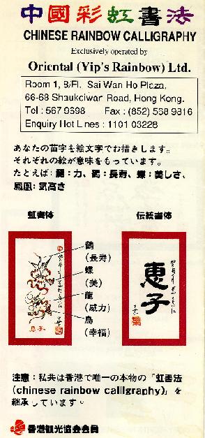 その後、香港の各地で、また、日本でもこの「中国彩虹書法」を見かけることがありましたが、これほど鮮明で品の良い仕上がりの作品に出合うことはありませんでした。