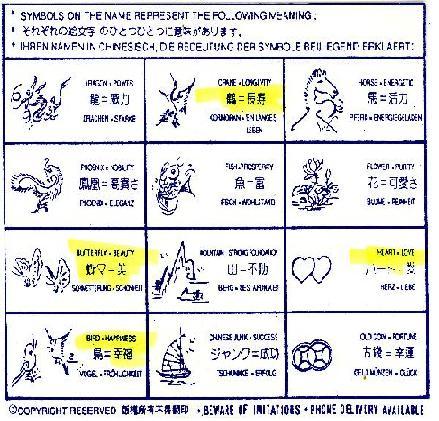 名前の上に描かれた鳥は