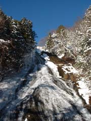 紅葉シーズンなどでの有名なアングルは、滝壺側から滝を見上げる形だが、冬の時期は滝上からの眺めをおすすめする。