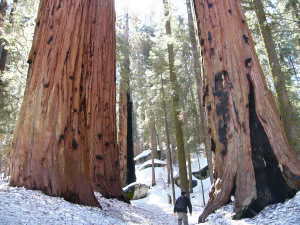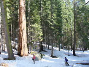 この木を出発点として、いくつかのトレイルがある。この時期、まだ雪が多く、限られた場所にしか行くことができなかったが、コースには柵がなく、セコイアの近くまで行けるところもあったので、直接木に触れることができた。