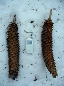 こんなに大きな松ぼっくりを発見!!シュガーパインコーンです。