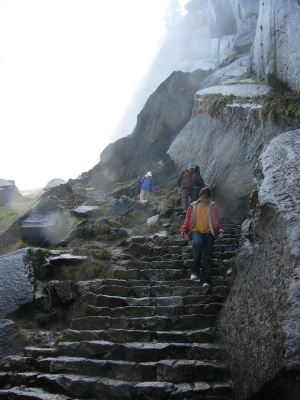 思いきり足場が悪く、あまりに危険で手すりのある階段も通り(ここでも水しぶきでびしょぬれ)
