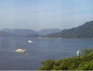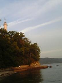 眼下には風にそよぎ、青々と波打つ木々の緑と白い灯台、そして瀬戸内の穏やかな海に浮かぶ島々と白い軌跡を残して行き交う船の光景が…。