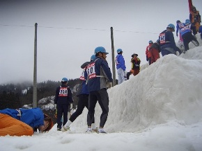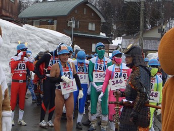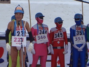 仮装部門の選手も大勢います。周りは雪の壁なのに
