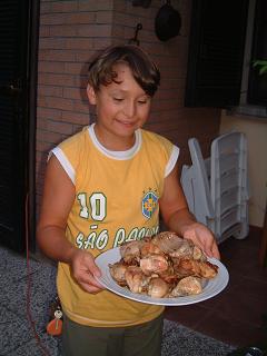 お肉と言っても、ポッロ(鶏)、コニーリオ(うさぎ=日本のペットのあの白うさぎではありません)、そしてマイアーレ(豚)、スペアリブ・・・いろんな種類がでてくるのである。どれも、これも美味しい、この美味しさは一体なんなんだろう!味付けはない、塩・コショウのみ。でも、やはりホストの気持ちが味付けになっているのだろう。そして、赤ワインがまた、その味わいを相乗効果で最高のものにしてくれる。