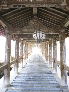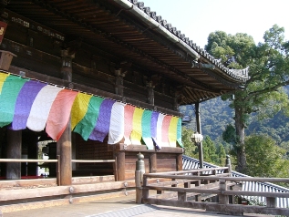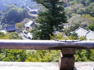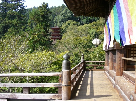 “舞台”からは、本堂の西方の丘に建つ五重塔を眺めることができます。