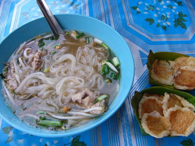 ベトナムのフォーよりも、もっと、にんにくチップや香辛料のパンチが効いているお味。