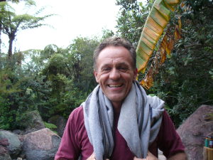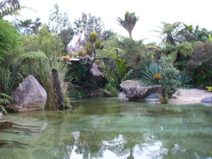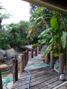 「ここには、こっちからお湯が流れて、こんな風に、ここでくつろぐことができるんだ。」