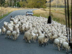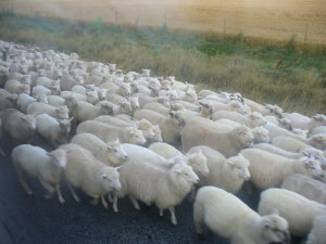 道にあふれる羊たち。