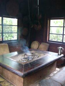 わら葺の建物には宿泊客全員が囲むことのできるくらい大きな囲炉裏。