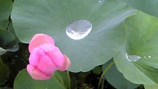 ハスの葉を弾く雨音が耳障り良く響いて…