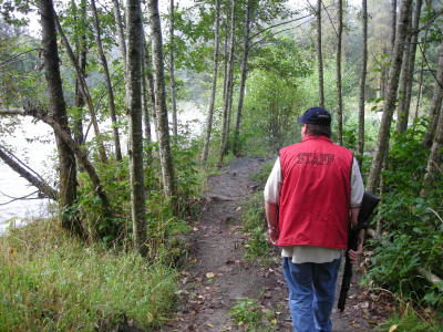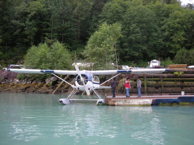 森の入り口に到着すると、水上飛行機で到着した先客のかたがた。