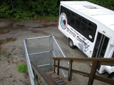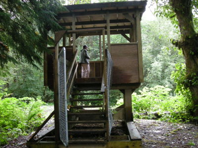 その展望台の階段の下には、熊達が登ってこないように、