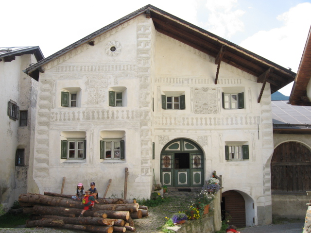 グアルダを含めこの周辺の家に多く見られるのがスグラフィットと呼ばれる家の飾りです