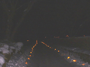 入り口から奥に向かって、道の両側をキャドルの灯りがつづく。
