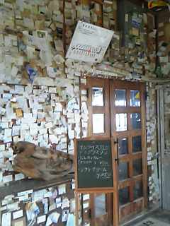 それまで閑散とした駅ばかりだったのに、ここでどっと団体客が乗り込んできたこともあったので、乗り合わせた方に「ここに何かあるんですか?」と尋ねてみますと、映画にもよく登場することや駅舎内には名刺などが壁いっぱいに残されているとのこと。