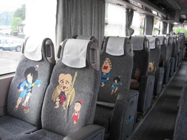 きたろうバスにも会ったよ 椅子のシートにもキャラクターたちが!