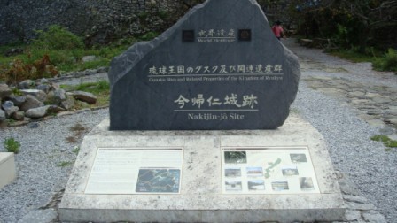 まず、今帰仁城につきますと、世界遺産の碑が見えます。