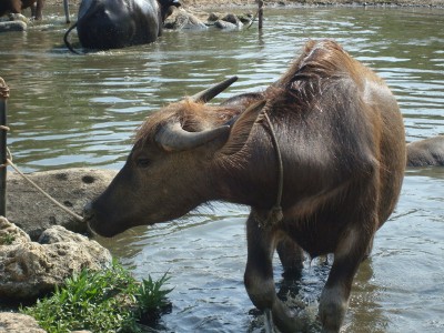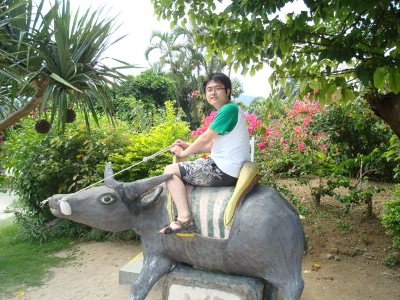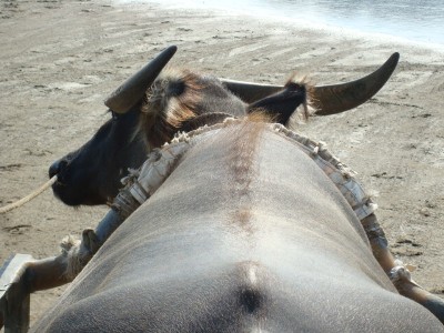 悪ふざけで、気分は、水牛車乗り(?)の気分を味わいました。