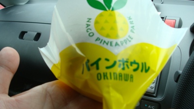 ナゴパイナップルパークを持つ観光客をよく見かけます。