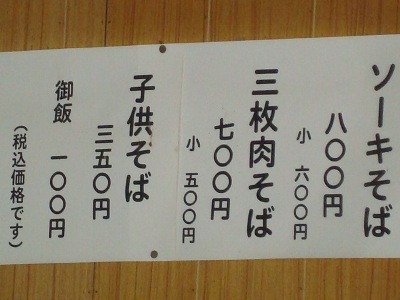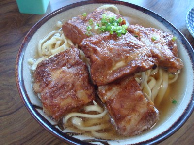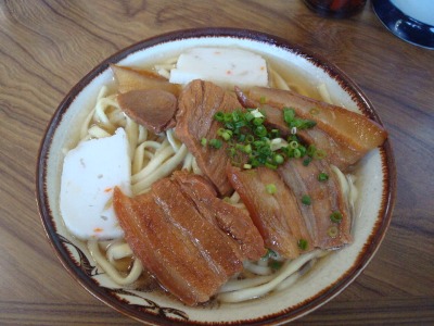 沖縄そば→三枚肉に、ねぎ・しょうがなどを加えた一般的なそば。