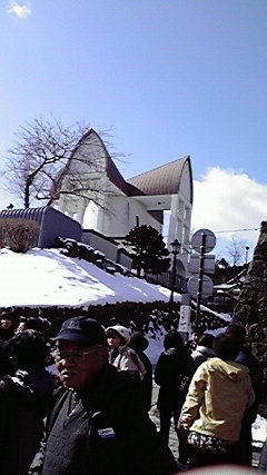 その散策路は石畳が敷き詰められ、まだまだ残雪は残っているものの、水はけが良く、観光客の散策がしやすいように工夫されている。