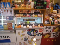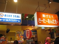 ここでも揚げたてのサーターアンダギーと、ブルーシールのアイスがずらりと。