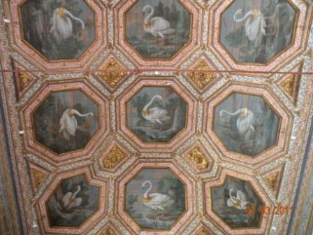 白鳥の間の天井には、27羽のそれぞれ違ったポーズをとる白鳥が描かれていて、何とも優雅な空間。