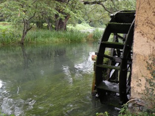 大王わさび農場で、広大なわさび園を散策。(東京ドーム11個分ですと!)清らかな川の流れと水車は、今のNHKテレビ小説「おひさま」でよく見る光景。その他、黒沢監督の映画の舞台にも使われたとか・・。