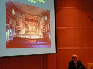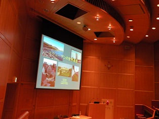 受付を済ませ、セミナーが行われるオーディトリウムへ。こちらもキレイな木目調。客席は階段式で、どこからでもスライドが良く見えます。