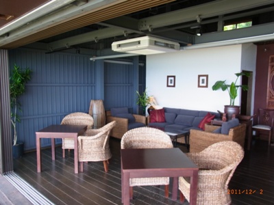 入り口から、カフェに入ると、目の前に、海が見えます。