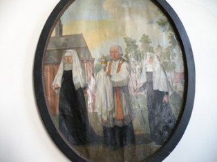 壁に飾ってあった絵には、修 道服を着たベギンの姿が描 かれています。