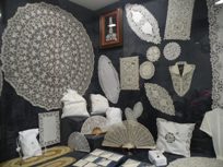 また、道路脇の店のショーウインドーに飾られたブリュージュの工芸品のレース細工も、と~っても緻密でうっとり。