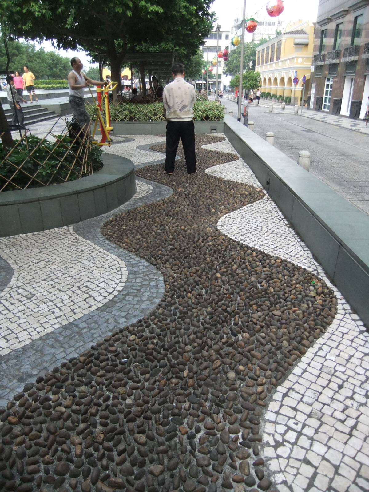 地面にいろんな形の石が敷き詰めてあって そこを歩くと足裏を刺激して気持ちいい