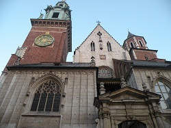 城門を入って左側にあるのがヴァヴェル大聖堂。左側後部には金色のドームのジグムント・チャペルがあり、外観のアクセントになっています。