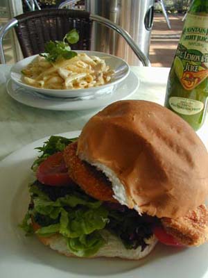 通常の3倍はあるチキンハンバーガー!!お皿にたっぷりのバスタ。おいしかったので、ペロッと平らげましたが!!