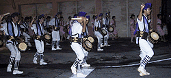 三線の伴奏に乗せて、大太鼓と締太鼓を叩き踊りながら、地元町内を練るく様はとても勇壮で、