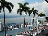 船をイメージした展望デッキからの眺めは、ベイエリアNO1の景観と言われ、宿泊客以外でも、S$20支払えば、入場できます。ただし、残念ながら屋上プールの利用は宿泊客のみです。