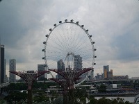 反時計回りで、マリーナ・ベイエリアの見どころを順次ご紹介いたしますと、橋を渡って、北に向かうと、まずは大きな観覧車、シンガポールフライヤーが見えてきます。
