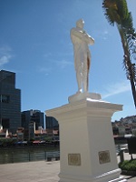 最後になりますが、マリーナ地区の歴史ある見どころはラッフルズ卿が上陸した広場。白いラッフルズ像があり、いつも観光客でにぎわっている界隈です。シンガポール・リバークルーズの遊覧船乗り場の近くでもあり、人気があります。