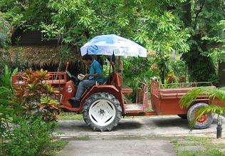 このトラクターに乗り込んで、当然舗装なんてされてないでこぼこ道を、歩く早さより遅いのではないかと思われるスピードで進む。