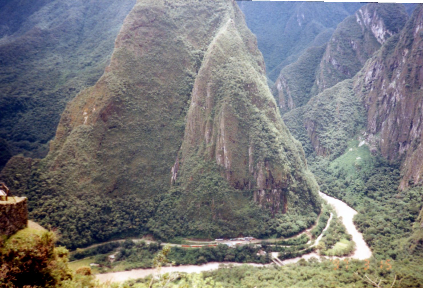 下に見えるのはプエンテ・ルイナス駅。標高差は約400m、下からはここに何があるのか全くわからない。インカの隠れ家と言われるマチュピチュの由縁だ。
