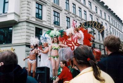 その後、ホテルのフロントで勧められた隣町でやっているカーニバルに行ってみた。途中で遭遇したパレードには、イタリア人、ブラジル人、いろんな国の人達が登場した。