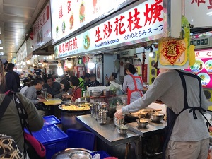 昨日は士林夜市の地下の食堂で、アワビやサツマイモの茎のニンニク炒め(サービス)、ビーフン、焼き飯など10種類以上の料理をハフハフ言いながら食べました。案内してくれたシーさんがいい人で、これまた最高でした。また来たいですね。